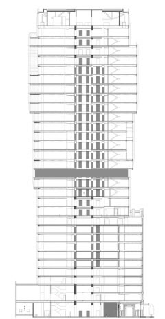 But there were problems with the design, so Swiss architect Harry Gugger was brought in as part of a “peer review” of the project. The owners (Credit Suisse Asset Management in Switzerland, SwissReal Investments in Vancouver) liked his ideas so much that he was brought in as the main architect.
